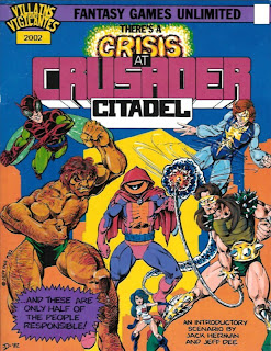 I was a little leery coming into this one, since the only module Dee and Herman worked on together was Crisis At Crusader Citadel, which gave us V&V’s iconic characters but also pioneered the “introductory encounter, fight with villains, track villains to lair for final battle” formula that defined a lot of V&V’s premade adventures. But hey, that was about thirty years ago, right?