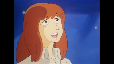 A sexy space pirate captaining a very Leiji Matsumoto-style spaceship tries to blow up the bridge the two are driving over for some reason, but they escape and drive into a desert. Because this place has a desert, apparently.